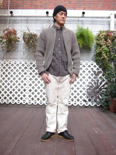 通常のものより肉厚な生地でミリタリーサーマルの用な雰囲気が新鮮です。